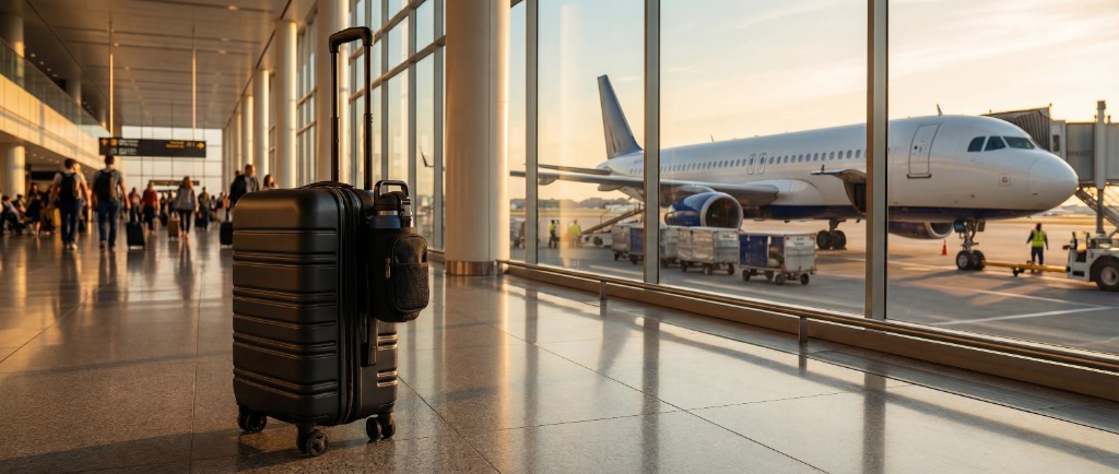 - Slim, lightweight, and TSA-friendly. Purpose-built for rolling carry-on suitcases, keeping your bottle stable and accessible from terminal to gate.